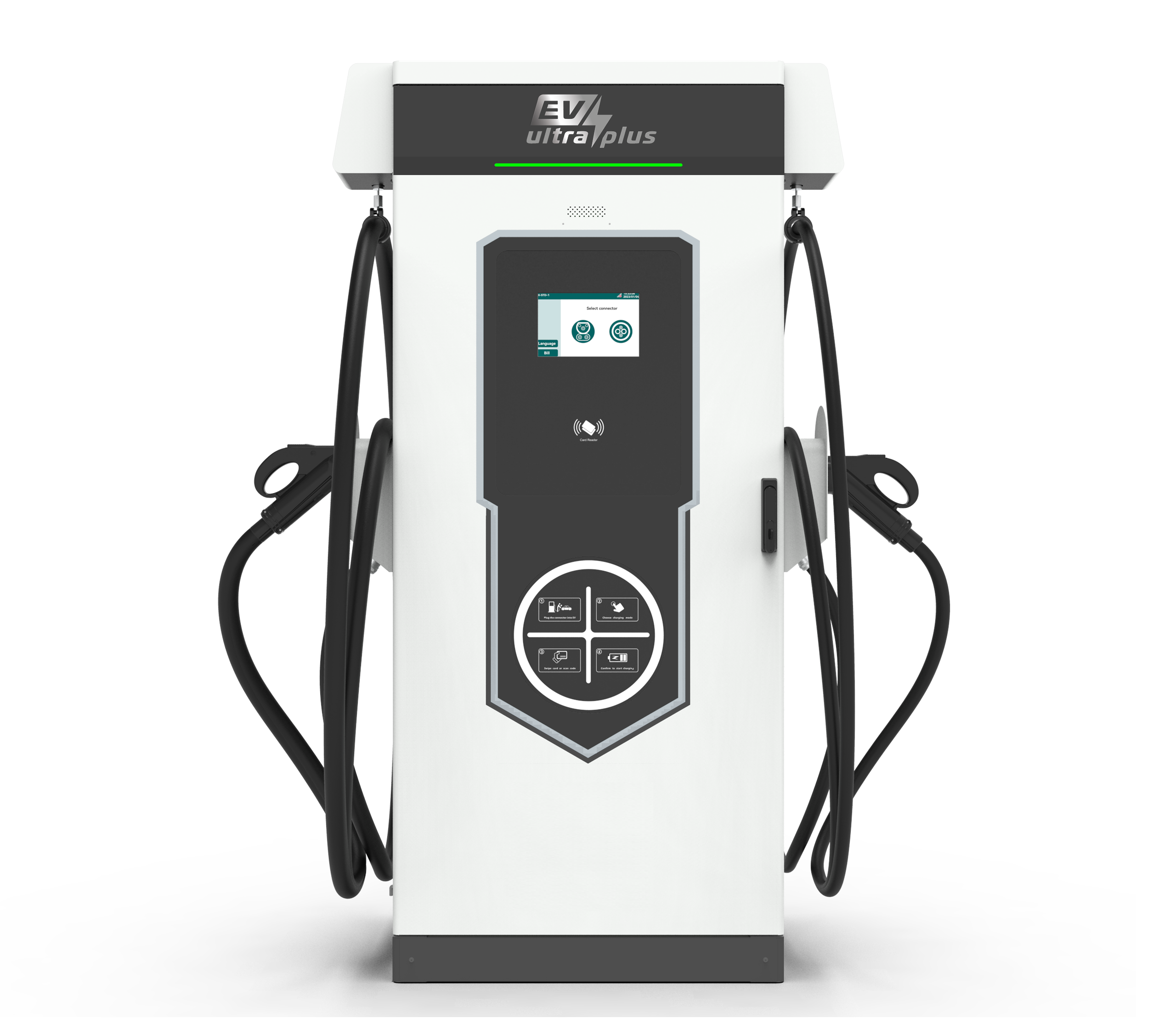 EV Ultra Plus make charging easy and user-friendly with our interactive 10.1 inch color touchscreen. This screen guides users through the charging process. The dynamic touch screen will help navigate through various options and provides live status and usage data.